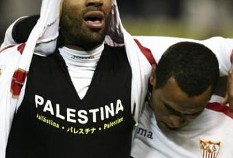 Kanouté affiche son soutien aux Palestiniens lors du match contre La Corogne en coupe d'Espagne, le 7 janvier 2009 à Séville