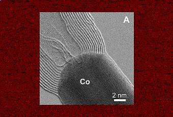 Légende photo : croissance d'un nanotube de carbone sur un cristal de cobalt, image réalisée avec le nouveau microscope électronique à transmission de l'IPCMS (crédit : IPCMS).