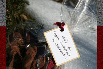 L'envie d'offrir des chocolats faits maison, mais pas de prendre des risques... pas cette fois en tout cas. Alors des petites noix enrobées de chocolat noir, c'est idéal : très facile, et si ratage il y a, on le voit immédiatement.