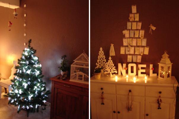 Chez Anne Gaëlle, la créativité est mise au service de la douceur et de la magie, pour le plus grands bonheurs de ses enfants. Au dessus du buffet, un superbe calendrier de l'avent fait maison brille par son originalité, sa simplicité et sa délicatesse: de simples pochettes transparentes numérotées à la main ont été accrochées en forme de sapin et remplies de douceurs et de jolies surprises, dissimulées par des papiers de scrap colorés. De petits personnages et une petite paire d'ailes d'ange en plumes rajoutent à la finesse de l'ensemble.