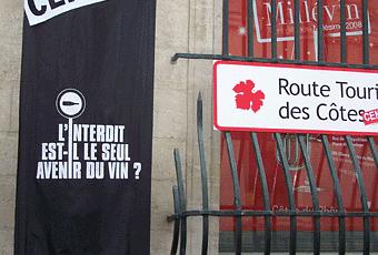 Photos prises devant le siège d'Inter Rhône à Avignon lors de la conférence de presse visant à sensibiliser l'opinion contre les lois vinicides et la diabolisation du vin de la part de nos pouvoirs publics.