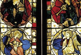 A noter par sa rareté, une superbe série de vitraux. La peinture sur verre de Dives-sur-Mer qui présente des anges musiciens fait écho, dans un heureux parallèle, aux superbes peintures murales de la Chapelle Saint Antonin qui jouxte le Réfectoire des Jacobins où, sur un fond de bleu orné de fleurs de lys blanches, des anges jouent de la viole, de la cornemuse, de la harpe et du psaltérion. Par ailleurs, dans l’exposition, deux statues de rois musiciens soulignent aussi qu’à cette époque au nord comme au sud de la France, trouvères d'Oïl ou troubadours d'Oc, poètes et musiciens apportent à l'Europe le culte de la femme et de la Vierge, l'amour courtois et l'idéalisme chevaleresque.