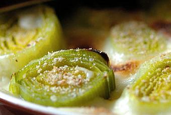Versez la sauce au fond d'un plat allant au four puis déposez "debout" les tronçons de poireaux. Saupoudrez d'un peu de chapelure, salez et poivrez puis placez au four quelques minutes pour gratiner.