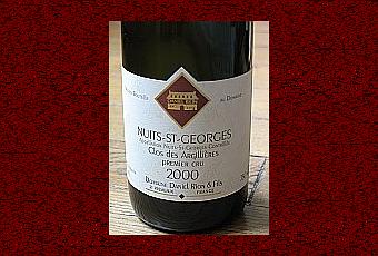Nuits Saint Georges 1er Cru Clos des Argilières 2000 : Un nez puissant de fraise des bois, puis de fruit noir mûr, de réglisse sur un fond légèrement animal cuir. La bouche attaque large avec des tanins soyeux dans une structure corpulente dégageant fruit noir, réglisse. La finale, légèrement amer, persiste joliment sur le fruit, et ces notes cuirs/animal. Très Bien +Amicalement, Matthieu