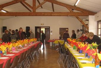 Dimanche 18 janvier 2009 a eu lieu le repas des anciens offert par le CCAS et la Municipalité. Dans la salle polyvalente de l’Eglisonne bien décorée pour la circonstance , chacun a pris place selon ses affinités. 120 convives avaient répondu à l’invitation , réservée aux Ampusians de 60 ans et plus , servis par les jeunes employées de la mairie , souriantes et dynamiques. Après l’apéritif où chacun est allé se servir ,vint le moment de l’allocution de M.le Maire qui présenta ses voeux à toute l’assemblée.