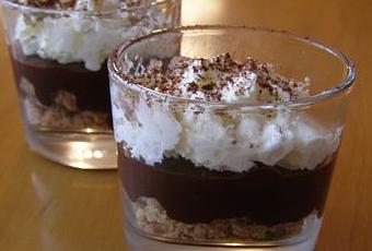 Montez la crème en chantilly. Emiettez les coockies au fond des verrines.