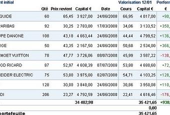 Le CAC progresse de 2.5% depuis le début de l'année après une pointe à 3426 points en séance le 06/01/09. Grâce à la bonne impulsion de BNP Paribas et Lafarge le portefeuille bondit de 2.72%.