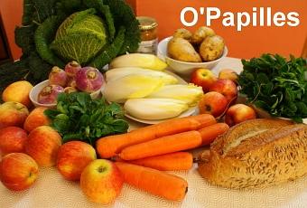 Dans le panier O'Famille de cette semaine des légumes cultivés selon les principes de l'agriculture biologique : un bocal de ratatouille bio élaboré à partir des légumes de cet été (tomates, aubergines, courgettes, poivrons, persil, basilic et thym) ainsi qu'un chou frisé, des carottes de Colmar, des navets, des pommes de terre, de la mâche, des endives cultivées selon les principes de l'agriculture raisonnée ,un pain Bio aux graines de tournesol, avec en complément des pommes des vergers du Vexin ayant le label du PNR. Uniquement des produits du terroir val d'oisien. Bonne cuisine, damien.