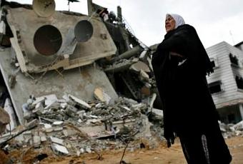 Une femme palestinienne demeure devant les ruines de sa maison, ) Jebaliya, dans le nord de la bande de Gaza, le 20 janvier.