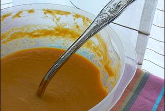 6. Passer la soupe au blender et ajouter le jus d'une demie orange. Saler, poivrer, et ajouter un peu de coriandre ciselée au moment de servir.