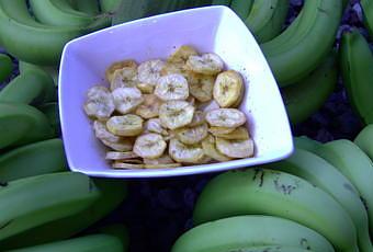 Eplucher vos bananes vertes ,les couper en rondelles assez fines ,les plonger dans de l'huile de friture bien chaude et laisser cuire 3 minutes .