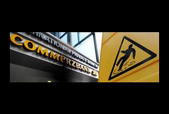 Photo: à l'entrée du quartier général de la Commerzbank AG à Francfort, le 31 octobre 2008 (Kai Pfaffenbach/Reuters).