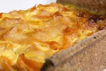 Pour la garniture 5 carottes 4 oignons moyens 200 g de tomme de savoie 3 oeufs 2 petits suisses 1 càs d'huile d'olive 1 pointe de cumin 40 cl de lait de soja