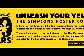 Pour les 20 ans des Simpsons, la Fox organise un grand concours de design! Le lot à la clé? Une invitation à L.A. pour l’avant première de la 21ème saison! Le concept? Créer une affiche montrant que les Simpsons sont partout dans votre vie! En plus de l’invitation, votre création sera le point de départ du lancement!
