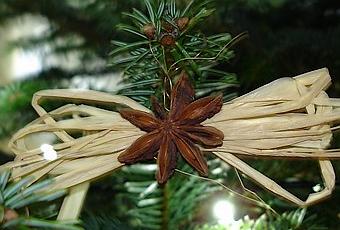 suspensions façonnées de mes p'tites mains comme le noeud de raphia avec l'anis étoilé sur le premier cliché.