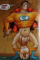 et quelque peu niais, Le King et le Sous-Fifre forment un duo très tendancieux librement inspiré de Batman & Robin, Le Citron Vert remplace Green Lantern dans un style très hip-hop, bref, tout le monde en prend pour son grade, Wonder Woman et Flash ayant également leurs pendants.Il faut l'avouer, le cocktail, à base de fellations, d'hémoglobine et de langage de charretier, est corsé et est à déconseiller aux âmes sensibles. Pourtant, malgré une forme très..."rock n'roll", le fond est loin, comme souvent avec Ennis, d'être stupide. L'on sent au contraire une critique très acerbe du politiquement correct à travers la mise à mal des mythes super-héroïques classiques. Mieux encore, l'auteur s'autorise même un début de réflexion sur le pouvoir et son apparente incapacité à changer les choses. Ainsi, alors que l'un des personnages se vante des périls qu'il a pu vaincre dans sa carrière, la Pro a cette réflexion douloureuse : "dommage que vous ne puissiez pas faire en sorte que je ne suce plus de bites pour nourrir mon gosse." La sentence est cruelle mais loin d'être gratuite, quant au côté brut du style, il est presque ici nécessaire, tant pour crédibiliser ce personnage malmené par la vie que pour bousculer des oreilles (ou des yeux dans notre cas) habitués à recouvrir les vilaines blessures de notre société par de beaux mots bien plus acceptables.Bon, bien entendu nous ne sommes pas ici dans un traité de philosophie, mais tout de même, pour qui sait voir au-delà des apparences, Ennis devient alors plus qu'un scénariste un peu bourru.Ceci dit, le but de la manoeuvre reste essentiellement de divertir. Vous aurez ainsi l'occasion de voir ce que donne une éjaculation de surhomme par exemple. Eh, c'est logique non ? Super vitesse, super force, super éjac ! Et gros dégâts. ;o)Une version française de La Pro est disponible aux Editions USA. On peut encore trouver assez facilement l'ouvrage d'occasion et à un prix abordable. La traduction aurait mérité un plus grand soin, l'album comportant tout de même son lot de fautes