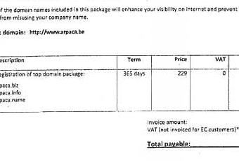Je vous invite donc à la plus grande prudence si vous recevez un message de ce type... Le prix des ces domaines (229 euros, soit 76,33 euros par an - 5 fois plus cher que nous...) est déjà exorbitant. Je suppose que la politique de cette société est d'engranger des paiements en provenance de comptables distraits.