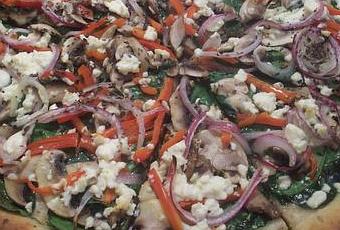Pizza aux poivrons, oignons rouges et fromage de chèvre