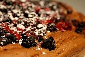 Versez la préparation dans un moule en silicone ou graissé et fariné. Déposez sur le dessus les fruits rouges et enfournez 30mn, Th6