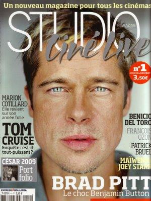 Brad Pitt est en couverture du n°1 de Studio Ciné live. Les deux magazines ont fusionné, ça y est c'est chose faite. Pour le coup, nouvelle maquette, nouveau design, l'édito parle même réinviter le journalisme de cinéma. Heu... j'attends vraiment de voir ça en vrai. Le magazine "alliera le peps de Ciné live et le glam de Studio". Why not, mais franchement, j'ai feuilleté le magazine et je n'y vois pas de différence significative et concrète avec les précédents mags, affaire à suivre... La rédac a adoré ce mois-ci Benjamin Button (il faut que je pose un jour ce soir-là pour voir ce film) et a beaucoup aimé Le bal des actrices, Volt, Morse, L'autre et Espion(s).