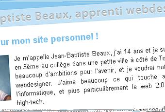 Alors voilà Paul m’a créé un sous-domaine et j’ai pu enfin installer WordPress pour pouvoir gérer plus facilement mon site personnel. Donc qui dit WordPress dit adaptation du thème, ajout de quelques fonctionnalités, etc. J’ai fait ça en une soirée et voici le résultat : http://cv.jeanbaptistebeaux.fr/ !