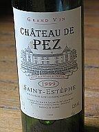 Saint-Estephe, Chateau de Pez 1999 : Un nez séduisant de fruit noir mûr sur un joli fond grillé toasté. La bouche est corpulente, droite, un léger creux à l'attaque, puis du fruit mûr cassis, mûre sur un fond toasté avec des tanins ronds qui accompagne le côté droit du vin. La finale est mûr sur le fruit noir, un peu acidulé puis délicieux grillé toasté de joli persistance. Très Bien. Un vin qui évolue très positivement avec le temps.Amicalement, Matthieu