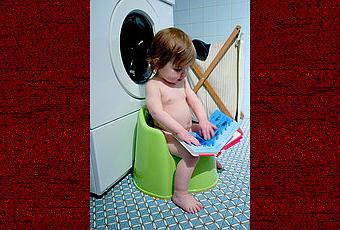 HA! La maudite propreté. Il n’est pas très long le moment entre le début de la marche et celui où l’on commence à se questionner (plus ou moins sérieusement) sur quand et comment commencer la propreté avec notre belle progéniture! Il y a longtemps que le petit pot a fait son entrée chez nous. Alors que Mamzelle Papoute avait à peine 14 mois, nous lui avons acheté un petit joli petit pot (NDLR: il s’agit du BabyBjorn Potty Chair - design minimaliste, confortable, facile à nettoyer et surtout sans flafla, c’est un pot, pas un jouet!) afin qu’il devienne partie intégrante du décors et qu’elle comprenne tranquillement ce à quoi il sert… Parce que déjà, elle nous parlait beaucoup de pipi et de… Par un pur hasard, très tôt dans sa petite vie, elle nous a fait un petit coco dans celui-ci (papa ayant été assez rapide lors d’un bain qui a faillit mal se terminer). Puis ça s’est arrêté là! Elle n’a plus rien voulu savoir du petit pot (à part pour y coucher toutous et poupées ou encore en faire un chapeau)… une chance qu’il était mignon dans la salle de bain et ce même inutilisé…