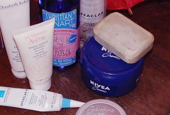 * La lotion à l'extrait de rose, Christian Lenart (au monoprix), au délicat parfum, et à l'exquis design rétro. Elle est parfaite pour nettoyer la peau en douceur et la réveiller le matin. La peau se régénérant la nuit, il ne faut pas la décaper à l'eau et au savon le matin, sinon, tous ses efforts de la nuits sont fichus...