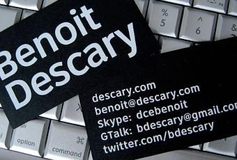 Séduisante et simple la carte de visite de Benoît, créée par Justin Ruckman. Et si tu habitais une maison gonflable ? Une nouvelle version de Flickr Upload est disponible. Puisque j'y suis, Freekr permet de télécharger des photos Flickr protégées (via). Tu t'en balances, mais Patricia Kaas pourrait représenter la France au prochain Eurovision. Abraham Lincoln inventa le smiley. Hu, vicieux, prend garde : des photos de gens qui prennent des photos de seins (via). Santa Klaus : pourquoi les lignes EDF ne sont pas enterrées ? La vengeance des cycliste est au bout du guidon.
