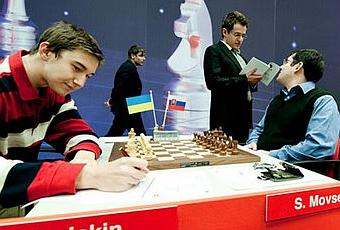 Ci-contre, Sergei Karjakin vainqueur hier du slovaque Sergei Movsesian - © Fred Lucas