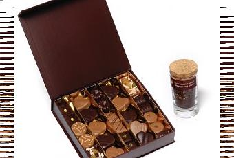 “Mix cacao“ avec des chocolats et 1 mélange chocolat pour vodka à partir de 26 € TTC. La boite de chocolats est porposée en 250g ou 375g ou 500g ou 850g.