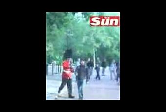 En pleine ronde devant le St James Palace, le soldat a rapidement vu rouge. Il a donc abandonné la cadence pour aller régler ses comptes avec le jeune touriste qui a payé pour tous les autres.