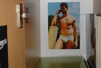 J’ai compris que quelque chose clochait quand je suis arrivé en salle des professeurs. J’ai d’abord remarqué les clins d’œil grivois des profs de français. Je me suis dit : “Tiens, il y a quelque chose de bizarre…” après quoi je vais m’asseoir. J’ai définitivement soupçonné quelque chose quand les profs d’EPS sont venus se frotter à moi sur les fauteuils avec leurs marques d’amitié ambiguës… J’ai scruté le visage Berrichon Masqué avec un air perspicace et charismatique comme Derrick quand il interrogeait les suspects, puis en sondant l’âme de cette pauvre créature, j’ai compris qu’il avait fait une connerie. Là il me regarde avec un air satisfait et il me dit : “Il est chouette ton casier… La décoration “poutres apparentes”, ça fait rustique !” Je me suis dirigé vers mon casier d’un pas calme et serein, j’ai ouvert la porte et j’ai vu ça :