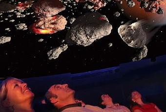Du passé au futur, propulsés dans la Voie lactée, les visiteurs sont interpellés par les phénomènes naturels qui se déroulent sur le dôme au-dessus de leurs têtes. De la collision de blocs de roche et de glace naît la Lune. De l’impact d’un astéroïde, il y a 65 millions d’années sur notre planète, découle un bouleversement total de la vie sur Terre provoquant l’extinction massive d’espèces vivantes telles que les dinosaures. Dans deux milliards d’années, les scientifiques prévoient que la Voie lactée sera percutée par Andromède pour ne former qu’une seule galaxie. Liés aux origines et à l’évolution de l’univers, ces chocs cosmiques ont créé le passé, affectent le présent et façonnent l’avenir.