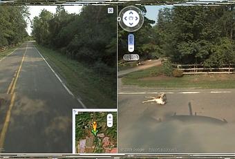 Il y a un nouveau hobbie pour les no-life internautes, celui de chercher des images insolites sur Google Streetview. Aujourd’hui, le fruit de la recherche montre un meutre à la Bambi. En effet, sur la première image, un Faon tout vivant traverse la route devant la camionnette de Google, alors que sur la seconde image, l’animal est tout mort sur le côté de la route, dépassé par l’ombre du véhicule. Mon dieu … Google tue des animaux, appelez Brigitte Bardot et Natasha St Pierre !!!