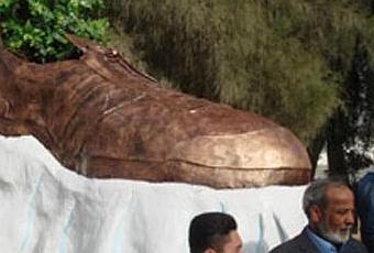 Evidemment certains Irakiens lui montrent desormais le plus grand respect et lui ont dédié un monument : une chaussure en cuivre de 3,5 mètres de hauteur, pour 2,5 mètres de long et large d’1,5 mètre.