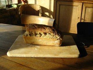 Au levain, avec des farines bio du moulin d'à côté, pétri à la main, cuit au feu de bois. Mince, j'ai pas regardé le cycle de la lune !