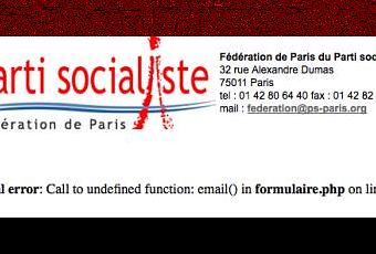 Copyright (c) 2001 Thomas Brattli (www.bratta.com)Nous voyons donc que la section de Paris du Parti Socialiste est un peu hors du temps. Bien sûr que le contenu est à jour (ou presque), mais un site si moche ça peut faire peur. Et le pire est ailleurs, à l'époque d'internet on cherche un trace de réseau social ou d'un truc voisin. Rien de celà, mais on peut laisser son adresse email pour s'abonner à la liste de diffusion par email. La réponse est très rapide, voilà une fédération vraiment très efficace: