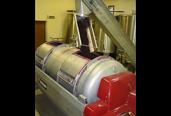 - Ensuite la porte de la cuve de macération est ouverte pour que l'on puisse récupérer les marcs sortis manuellement avec une fourche puis seront pressurés dans un pressoir pneumatique afin d'en extraire le jus de presse.
