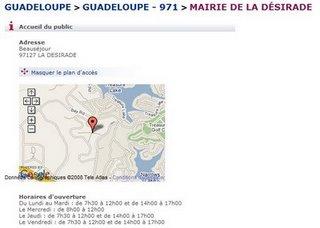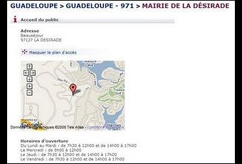 Gardner est heureux de constater que l'erreur, que nous avions signalée au Webmestre de l'Annuaire des administrations, qui concernait le plan d'accès à la Mairie de la Désirade, a été depuis corrigée.Le choix des administrateurs de ce site gouvernemental, a été, purement et simplement, le retrait de ce plan de la page consacrée à notre Commune.