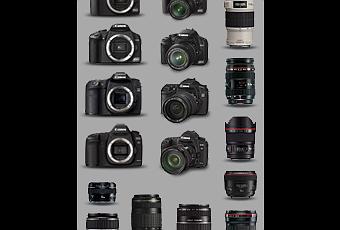 La sélection de boitiers comprend : 1000D, 450D, 50D et 5D Mark II.