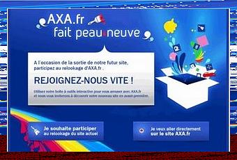 Je salue l'initiative. L'interface permet de totalement remonter la page web du site (blocs image, textes, couleurs) puis d'envoyer son montage à axa ainsi qu'à ses amis. L'internaute dispose d'une palette d'outils pour officier votre revampage de site. Je déplore toutefois que cette expérience n'aille pas plus loin (espace clients, concours web, viral...).