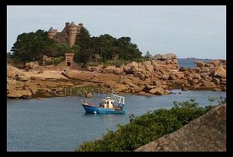 Photo prise l'en dernier, aux beaux jours. J'aime ce coin si étonnant : la côte de granit rose, entre Perros guirec et trégastel. Amas de rochers aux couleurs uniques et aux formes étonnantes. A l'occasion, je vous montrerais "La bouteille renversée", "la tortue", "le dé"... Et au beau milieu de ce coin, un chateau trône sur son île. COmplètement intégré aux couleurs du paysage, comme sortant de son bois...