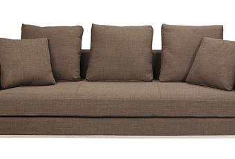 Très bon rapport qualité-prix pour ce canapé 4 places couleur caviar avec un très beau piètement en métal, une belle qualité de tissu et un grand confort d’assise.