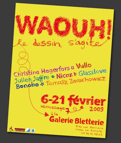 Du 6 au 21 février, un joyeux florilège d'artistes-illustrateurs de La Rochelle et ses environs, débarque à La Galerie Bletterie : la grande Nicoz Balboa apportera ses dernières pyrogravures avant qu'elles ne partent aux USA, le génial Vullo présentera ses nouveaux dessins tout frais accouchés de sa souris, le surfeur Glasslove n'hésitera pas à exposer ses planches même si pendant ce temps-là il se la coule douce en Australie, le prolifique Bonobo descendra du