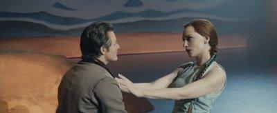 Troisième séquence, la fameuse en robe rouge que l'on voit dans la bande annonce et qui a servi pour les photos promo du film. Daisy, pieds nus, dans un kiosk en plein air, face à un Benjamin fasciné, improvise quelques pas, suis l'impulsion du moment, se laisse portée par une musique lointaine et le rythme de sa voix et donne ainsi corps au discours qu'elle a tenu quelques minutes plus tôt au sujet de la modernité en danse. "It's a whole new world for dance now. It's called abstract. […] They just torn up all those convensions.[…] It's all about the formality of the dance. It's new, it's modern, it's Americain, they understand our vigor, our physicality". Une modernité qui se voulait jouer sur la libération du corps du danseur classique et qui trouve son écho dans les avances que Daisy fait à Benjamin.