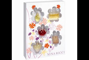 Un joli coffret qui renferme 5 miniatures : Nina (4 ml), L'Air du Temps (2,5 ml), Love in Paris 5 (ml), Premier Jour (4 ml), Farouche (2,5 ml).