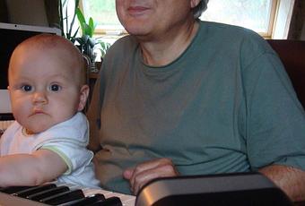 De plus Madame Billaut et moi-même, nous nous sommes beaucoup occupés d'Arthur Billaut 2.0, le petit fils, qui je pense promet : il y une façon très cavalière et bien à lui d'utiliser la souris de mon Mac - il la préfére à la souris du PC - , ce qui en dit long sur ses futures e-aptitudes... (ici avec votre humble serviteur... en essayant de faire un peu de musique - il aime le son du piano...)...