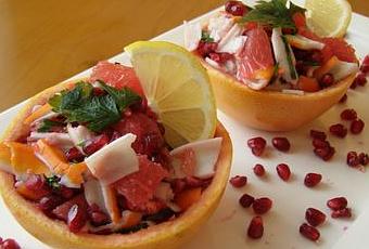 Mélangez tout les ingrédients et en garnir chaque moitié de pamplemousse.
