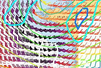 Les fichiers GRIB sont impressionants avec les traingles noirs sur les barbules indiquants des vents de 50 noeuds. Il ne fait pas bon être en mer ce soir et même au port les rafales sont impressionantes.